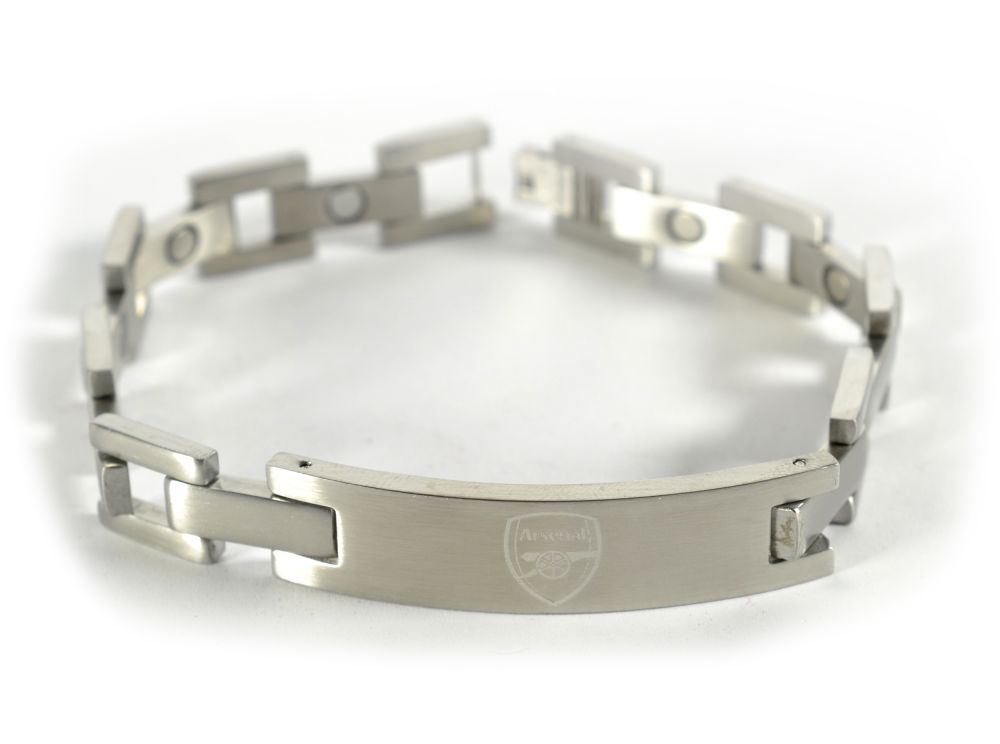 - Stainless steel linked bracelet with engraved Arsenal FC crest