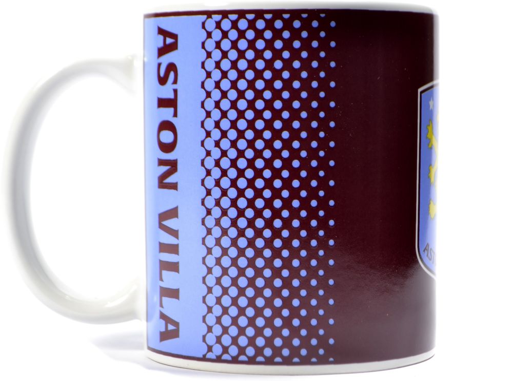 The Aston Villa Fade 11 Oz Boxed Mug is an official licensed product that features the club crest and team colours in a fade design. The mug is made of high-quality ceramic and holds 11 ounces of liquid. It comes in a printed card box, making it a great gift for any Aston Villa fan.