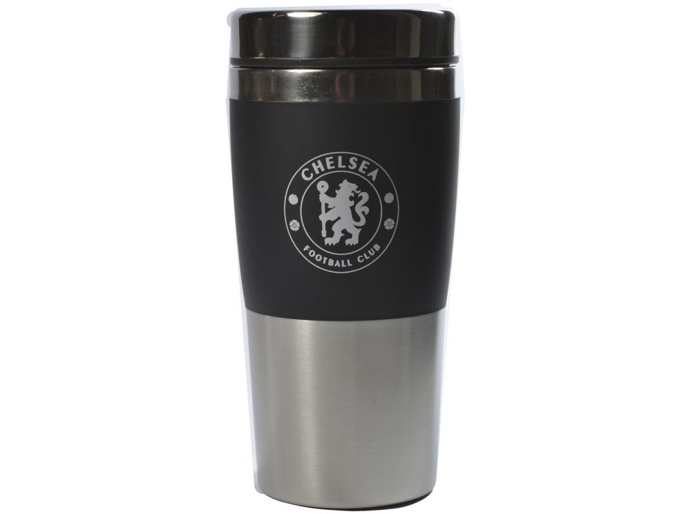 Chelsea FC Executive Handleless Metallic Travel Mug Black Silver