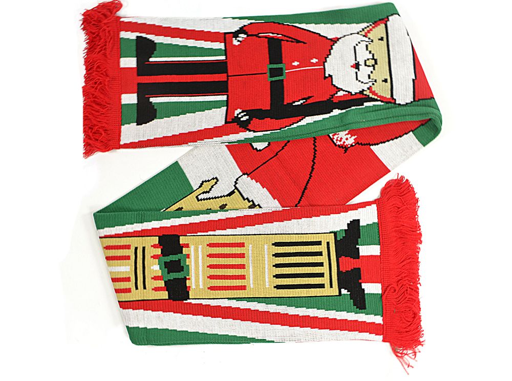 Big Ben Super Soft Christmas Scarf jacquard knit scarf featuring Big Ben and Father Christmas exclusive to BB Sports made in England. The new alternative to the Christmas jumper!