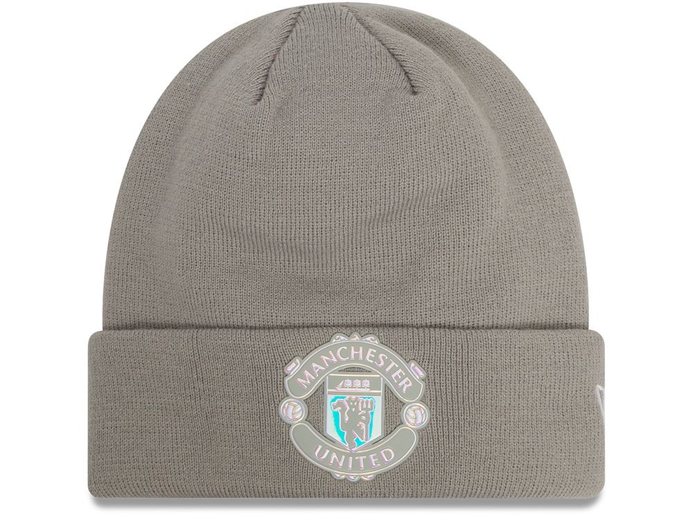 New Era Man UTD Iridescent Cuff Knit Beanie Hat Grey