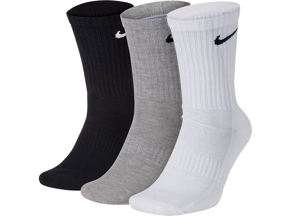 Power through your workout with the Nike Everyday Cushion Crew Training Socks (3 Pair). The thick terry sole gives you extra comfort for footdrills and lifts while high-friction yarns in the footbed reduce slippage.
