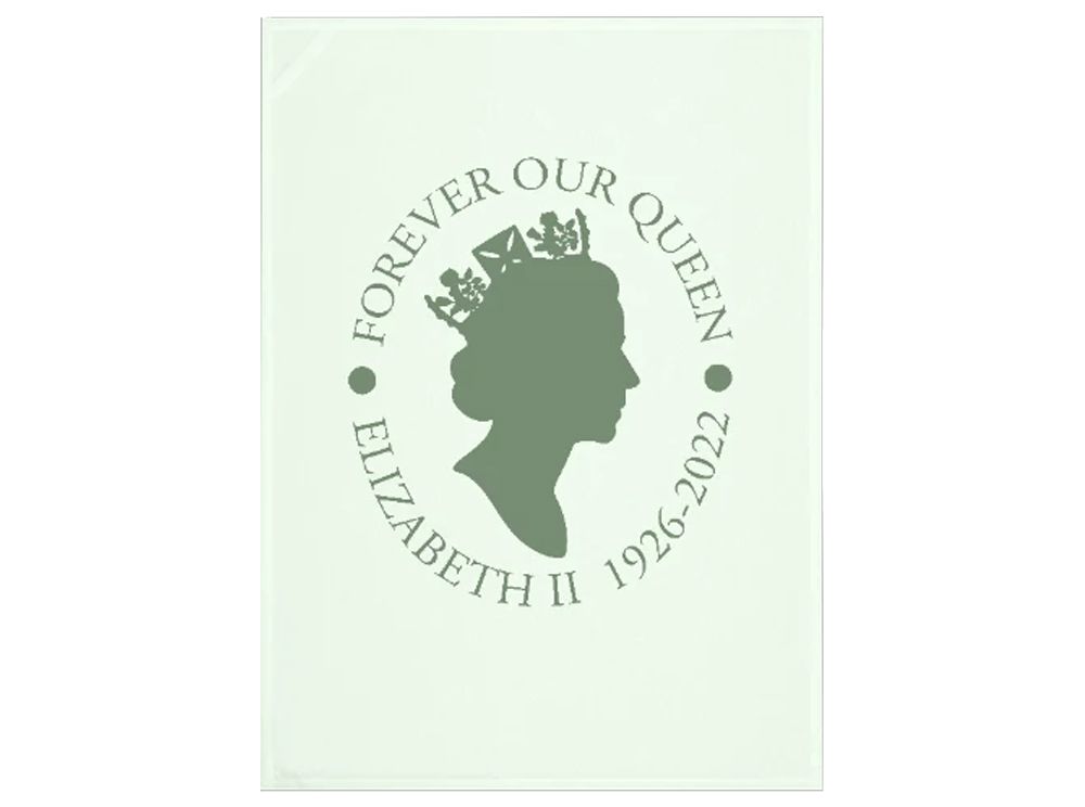 Queen Elizabeth II Forever Our Queen Emblem Pastel Mint Tea Towel