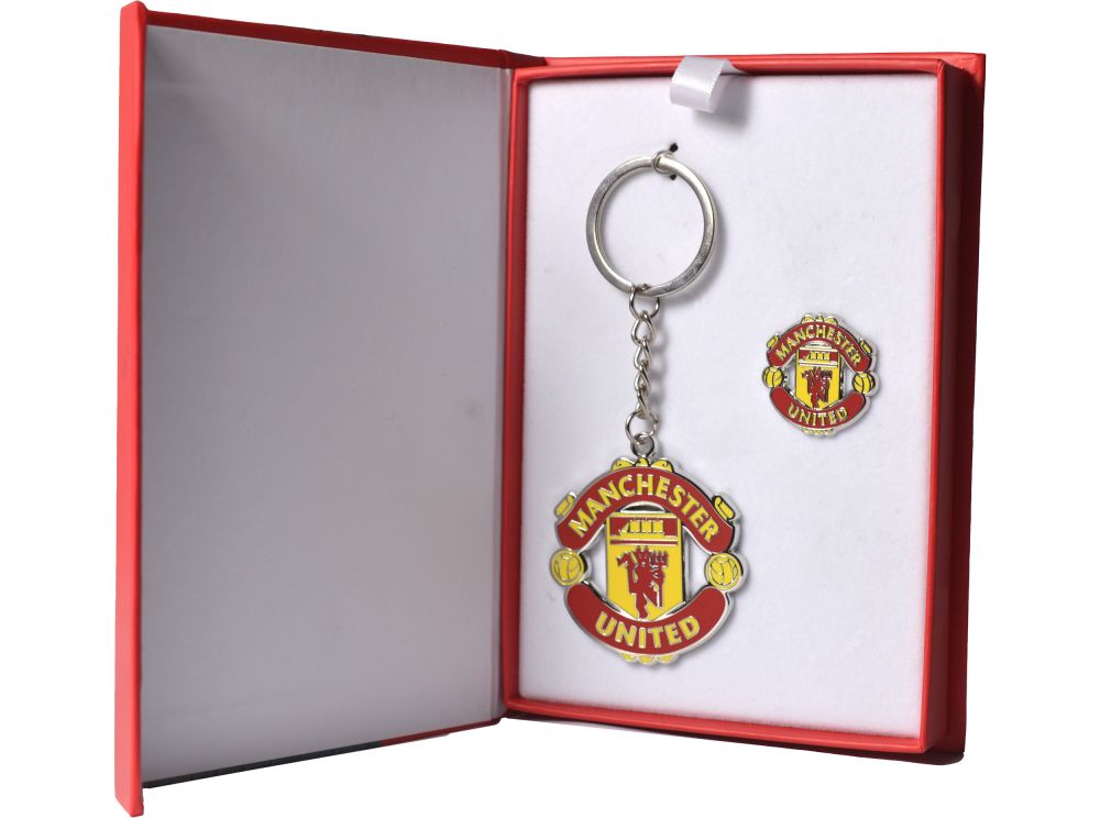 Manchester United Premium Boxed Executive Crest Keyring and Badge Set